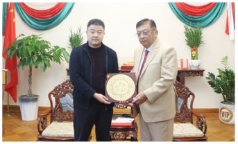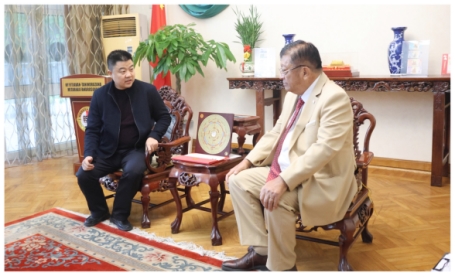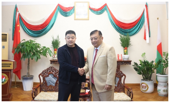 图为:叶红军与马达加斯加共和国驻华大使让·路易·罗班松合影留念
