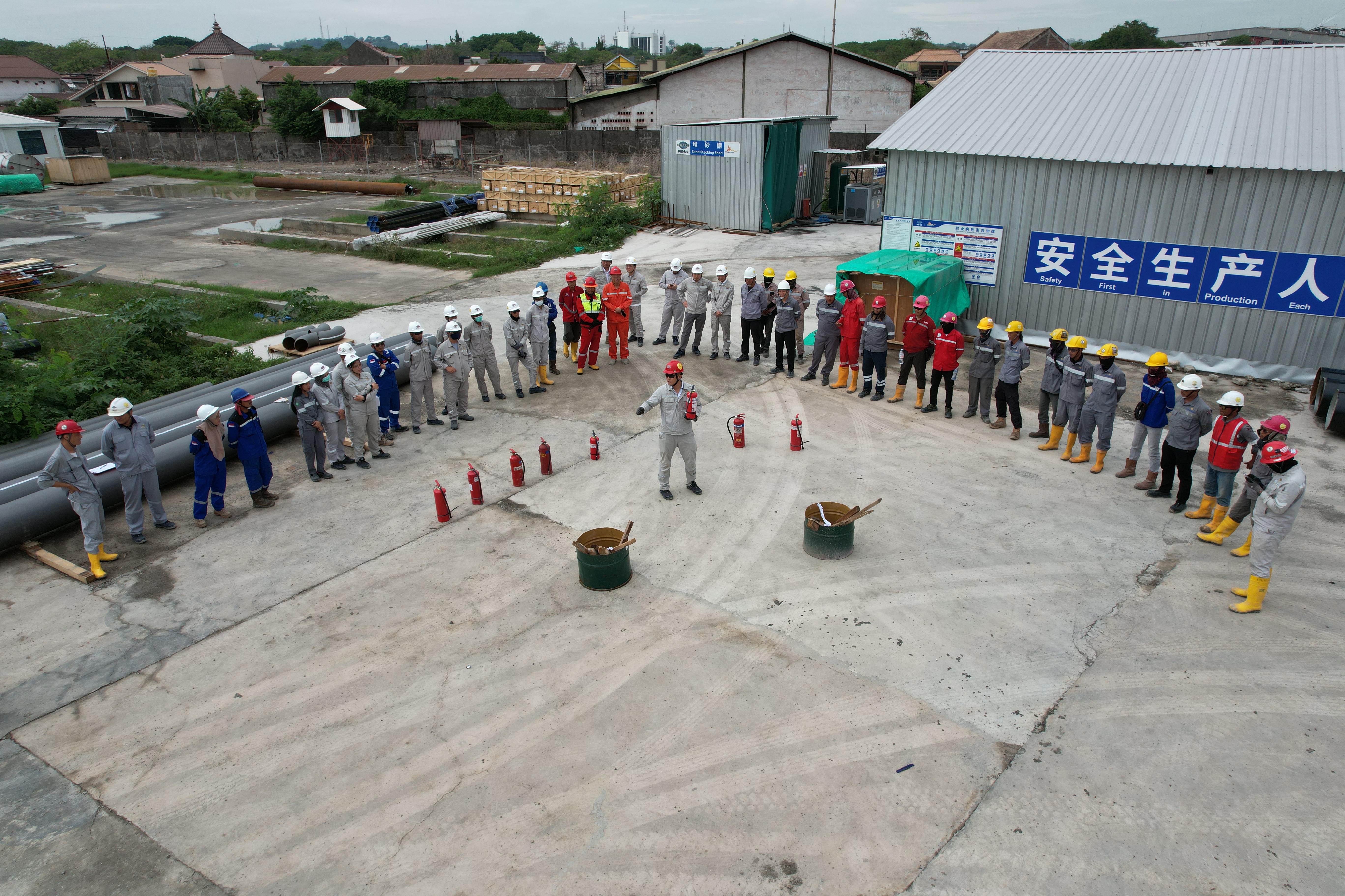 演练前期已完成油桶、灭火器等器材的筹备与布置。现场实操环节,专业人员详细讲解并演示了灭火器使用规范:需站在上风口位置,提起灭火器摇匀,拔掉保险销,将喷嘴对准火源根部喷射,直至火焰完全熄灭。