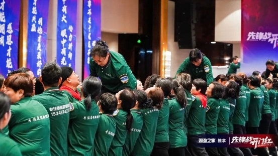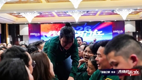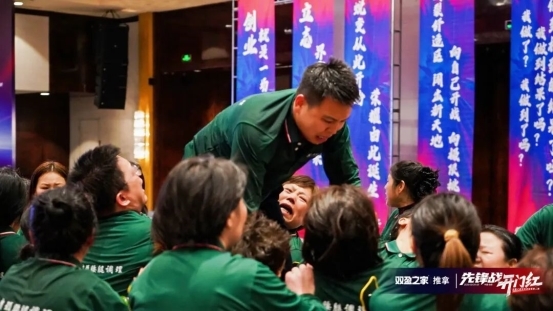 以前都是董事长文韬老师和创始人彩总为我们搭平台、扛风雨,汗水泪水都藏在背后。“成功之路”环节后,在场的18支战队全员上阵,用双手和肩膀搭起最坚实的人梯桥,让两位老板踩着我们的肩膀,一步步走向成功的对岸!每一双托举的手、每一个咬紧的牙关,都是最直白的感恩:这一次,换我们来守护你们、托举你们!