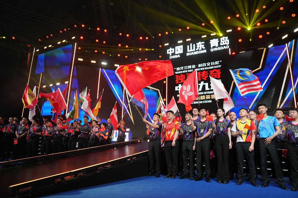 开幕式高潮迭起,世界花式撞球协会体育总监约根·桑德曼登台致辞,对赛事组织工作与中式九球国际推广成果给予高度评价。他表示,中式台球为世界台球运动发展带来巨大价值,谨代表 WPA 向独牙台球运动推广公司、各赞助伙伴,以及青岛市人民政府、青岛市体育局、市南区政府的周密筹备与热情接待致以诚挚感谢。